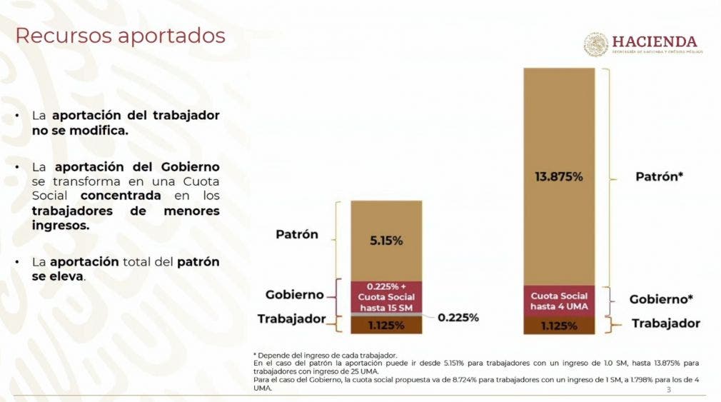 Arturo Herrera, secretario de Hacienda, explicó que la aportación patronal para las pensiones pasaría de 5.15 a 13.87 por ciento, la de los trabajadores no aumenta y la del Estado modifica su composición para beneficiar sólo a los trabajadores de menores ingresos, sin incrementar su monto total. La propuesta establece que la edad mínima para las pensiones es a partir de 60 años.