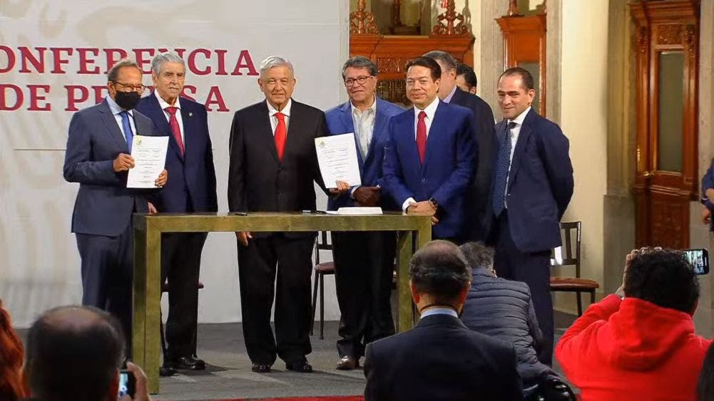 También resaltó la participación de Carlos Aceves del Olmo, secretario general de la Confederación de Trabajadores de México (CTM). A la presentación en la conferencia de prensa matutina en Palacio Nacional acudieron además los presidentes de las Juntas de Coordinación Política de las Cámaras de Diputados, Mario Delgado y de Senadores, Ricardo Monreal.