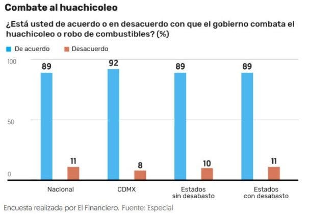 El 89 por ciento de la población en México está de acuerdo con la estrategia del presidente Andrés Manuel López Obrador en contra del robo de combustible, de acuerdo con la encuesta de El Financiero.