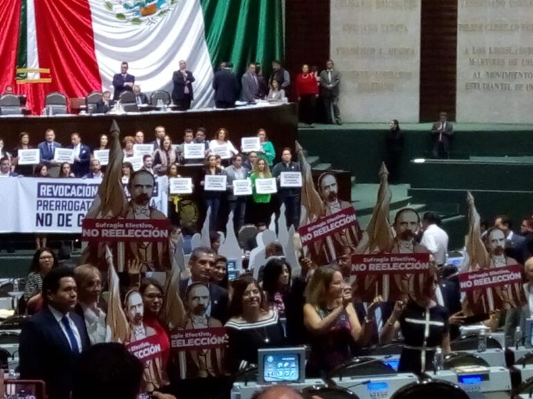 La aprobación, con mayoría calificada, se dio en medio de un intercambio de señalamientos y pancartas con la leyenda “Sufragio Efectivo, No Reelección” entre Morena y la oposición.