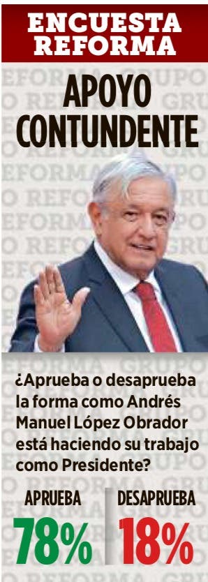 El 78 % de los mexicanos aprueba el trabajo realizado por el presidente Andrés Manuel López Obrador (AMLO) en sus primeros 100 días de gobierno, de acuerdo a una encuesta realizada por el diario Reforma.