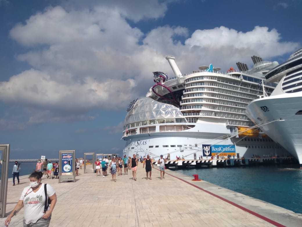 Este lunes la isla de Cozumel le dio la bienvenida al crucero más grande del mundo: el Wonder of the Seas, de la línea Royal Caribbean, que cuenta con una capacidad para más de 6 mil pasajeros, además de 2 mil 300 tripulantes.