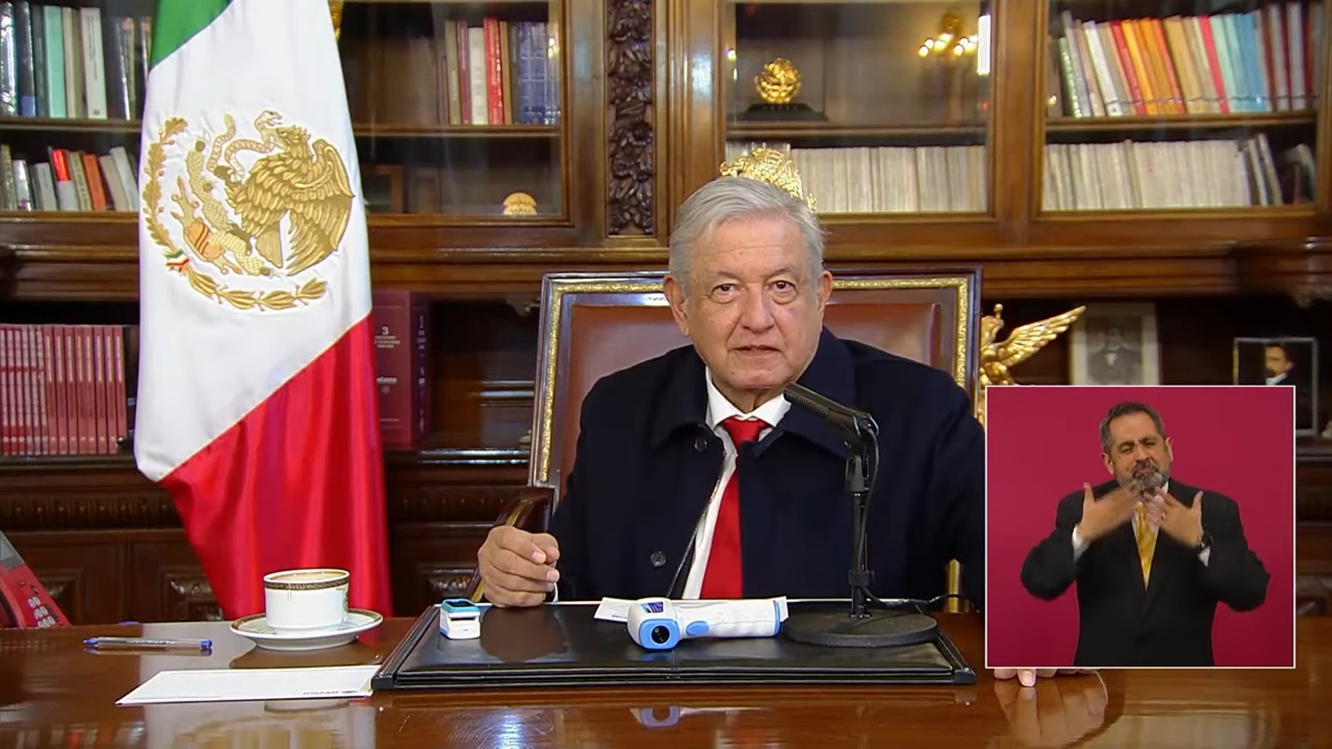 “Me voy a medir la temperatura: 36.1; así está, no he tenido temperatura; oxigenación, 96” -dijo el mandatario, mientras accionaba, sucesivamente, el termómetro electrónico y el oxímetro.