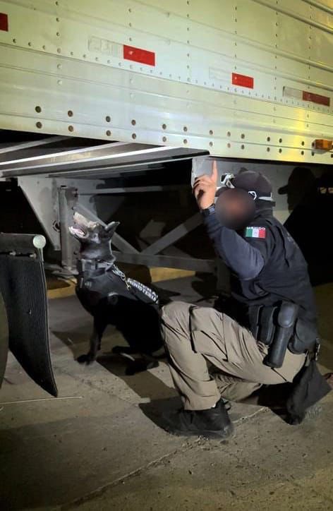 Las pastillas fueron aseguradas dentro de rieles de metal de la estructura inferior de un tractocamión del Servicio Público Federal, en el que se detuvo además al chofer, Alfonso B.