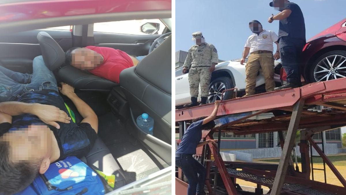 Aseguran a migrantes escondidos en autos nuevos