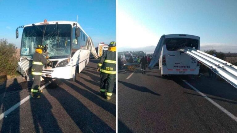 Según testigos, aseguraron que el chófer del autobús se quedó dormido y luego de perder el control del autobús, terminó por chocar contra la barra de contención, la cual atravesó la unidad de transporte de personal.