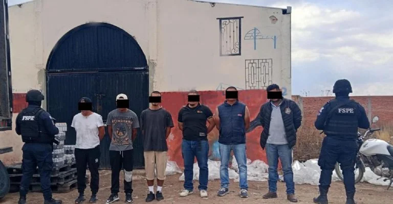 Durante el despliegue, elementos de las Fuerzas de Seguridad Pública del Estado lograron la detención de seis individuos que se encontraban dentro del inmueble al momento del cateo. Además, fueron asegurados tres vehículos que presuntamente eran utilizados para transportar los productos decomisados.