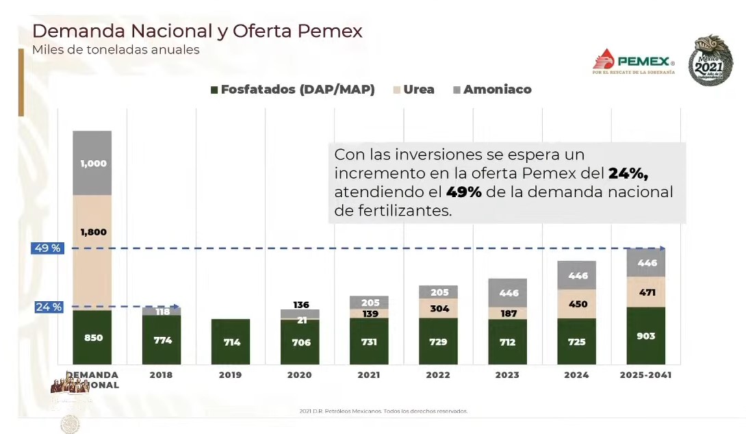 Las reservas de hidrocarburos; la producción; el cambio de modelo de producción; la reactivación del proyecto cangrejera; la producción de fertilizantes, que pretende que en 2024, se logre el 49 por ciento de producción de éstos en las plantas a Agronitrogenados y Fertinal; los centros productores de gas; la recuperación del mercado de combustibles, y la basíficación de trabajadores transitorios.