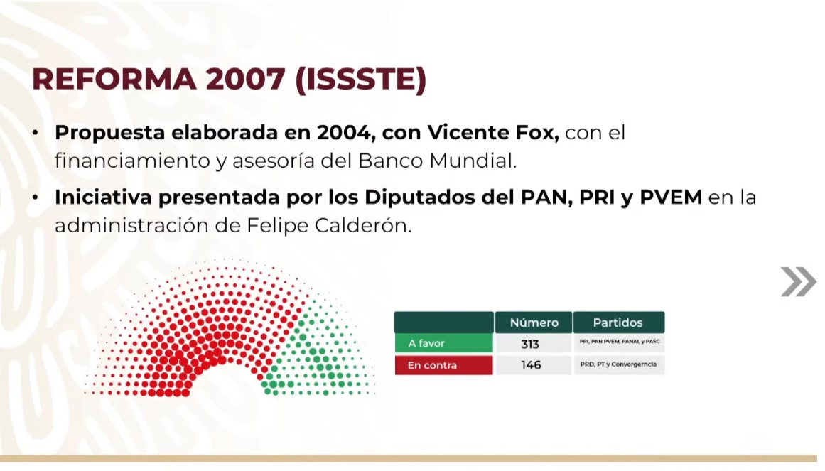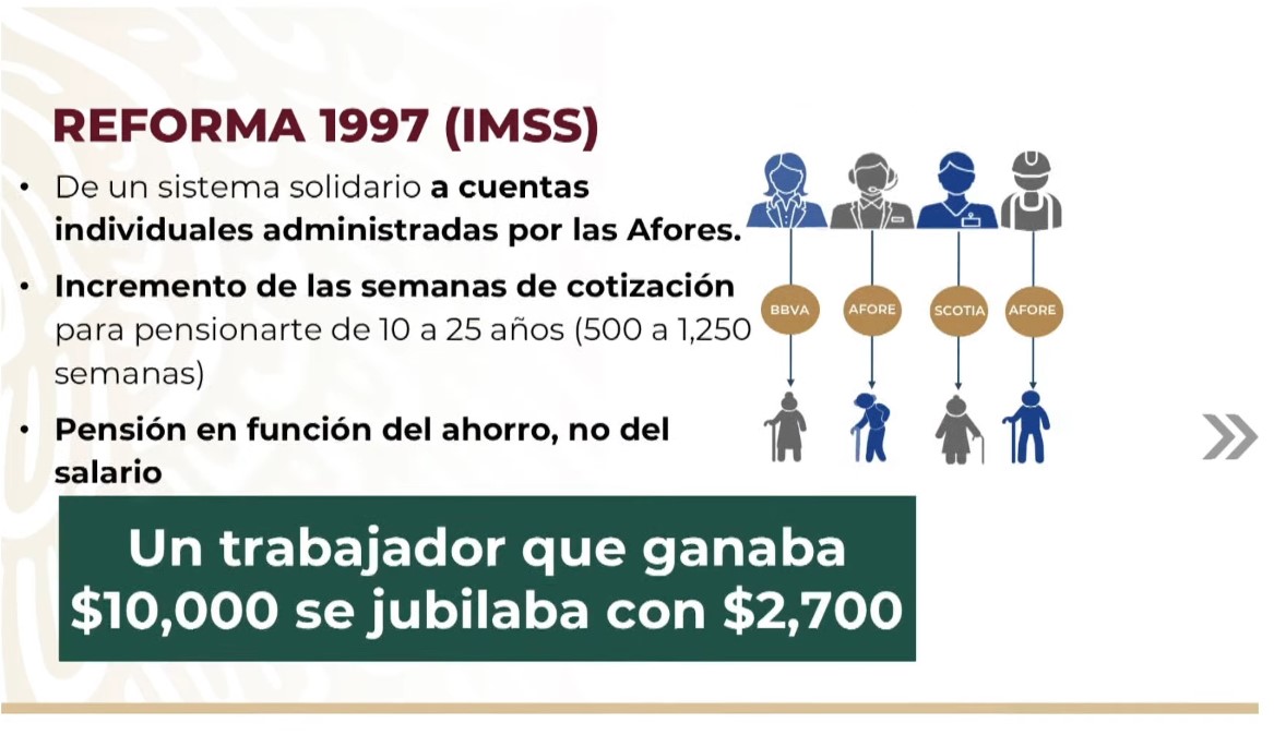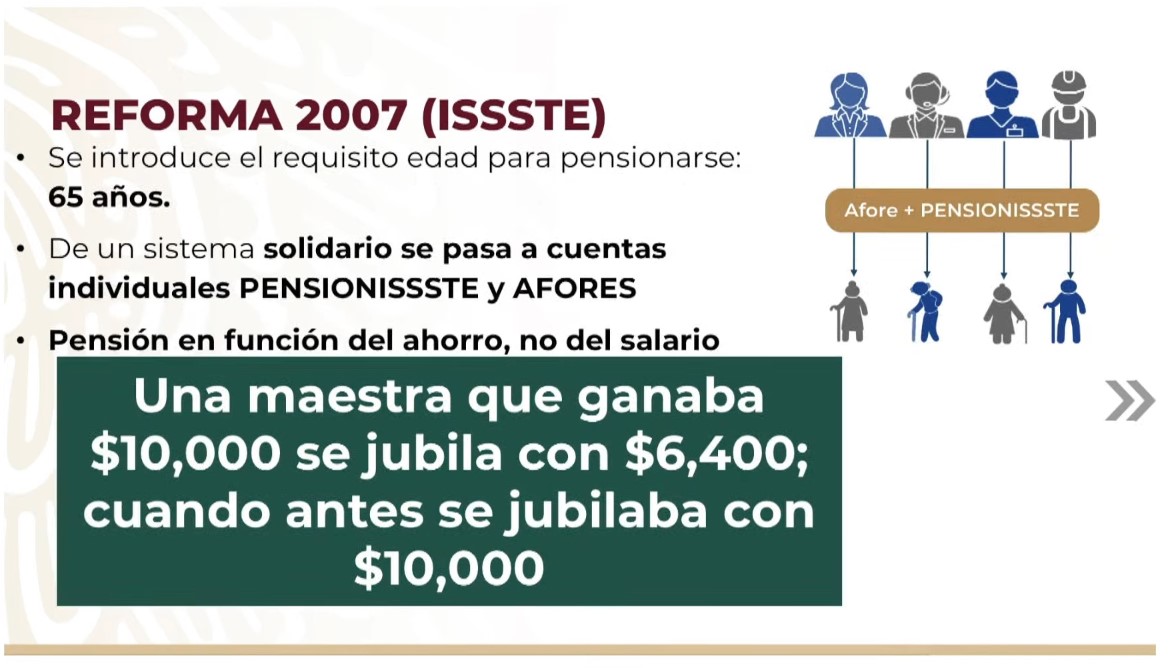 Con ello, dijo, se pretende compensar el daño que produjo a los trabajadores las reformas en materia de pensiones que hicieron los presidentes Ernesto Zedillo y Felipe Calderón
