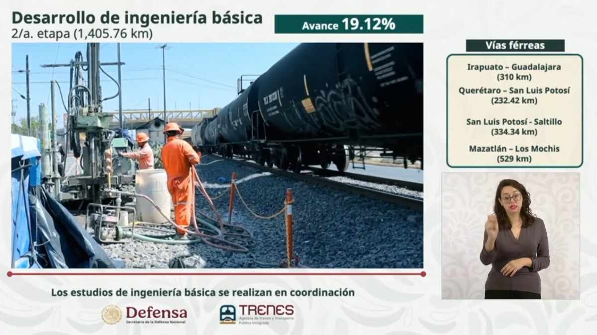 Vallejo dijo que el área de ingenieros militares ya trabaja en una segunda etapa de proyectos ferroviarios que comprenderán mil 400 kilómetros y que incluyen las rutas Irapuato – Guadalajara, Querétaro – San Luis Potosí, Saltillo – Nuevo Laredo y Mazatlán – Los Mochis.