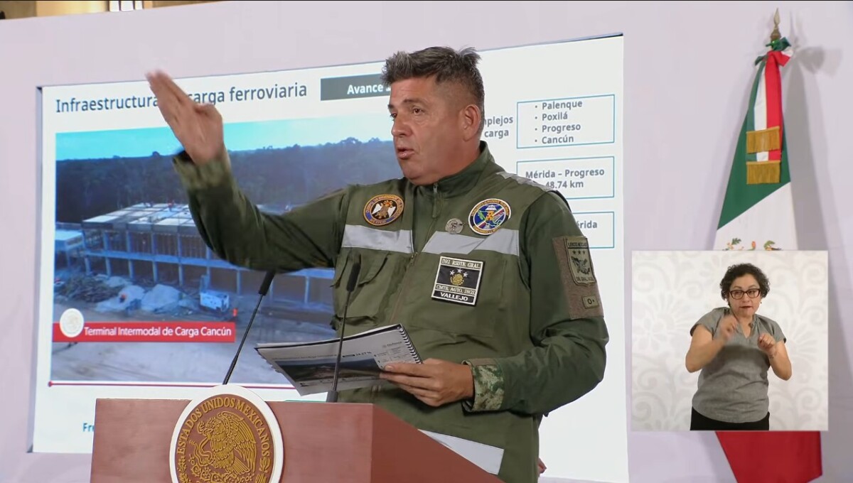 Avanzan obras para captar el transporte de carga en la ruta del Tren Maya hay una progresión del 25 por ciento, informó el general Gustavo Ricardo Vallejo Suárez, comandante del Agrupamiento de Ingenieros Felipe Ángeles de la Secretaría de la Defensa Nacional.