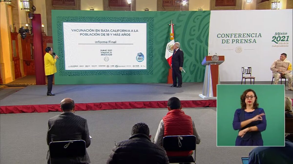 La titular de Seguridad inició diciendo que “nos encargó coordinar la vacunación en Baja California de manera universal a la población de 18 años en adelante. Nosotros hoy traemos el informe final que nos dice que está totalmente vacunada la población contra el Covid-19 en Baja California, convirtiéndose así en la primera entidad que recibe la vacunación de los mayores de 18 años a toda la población.