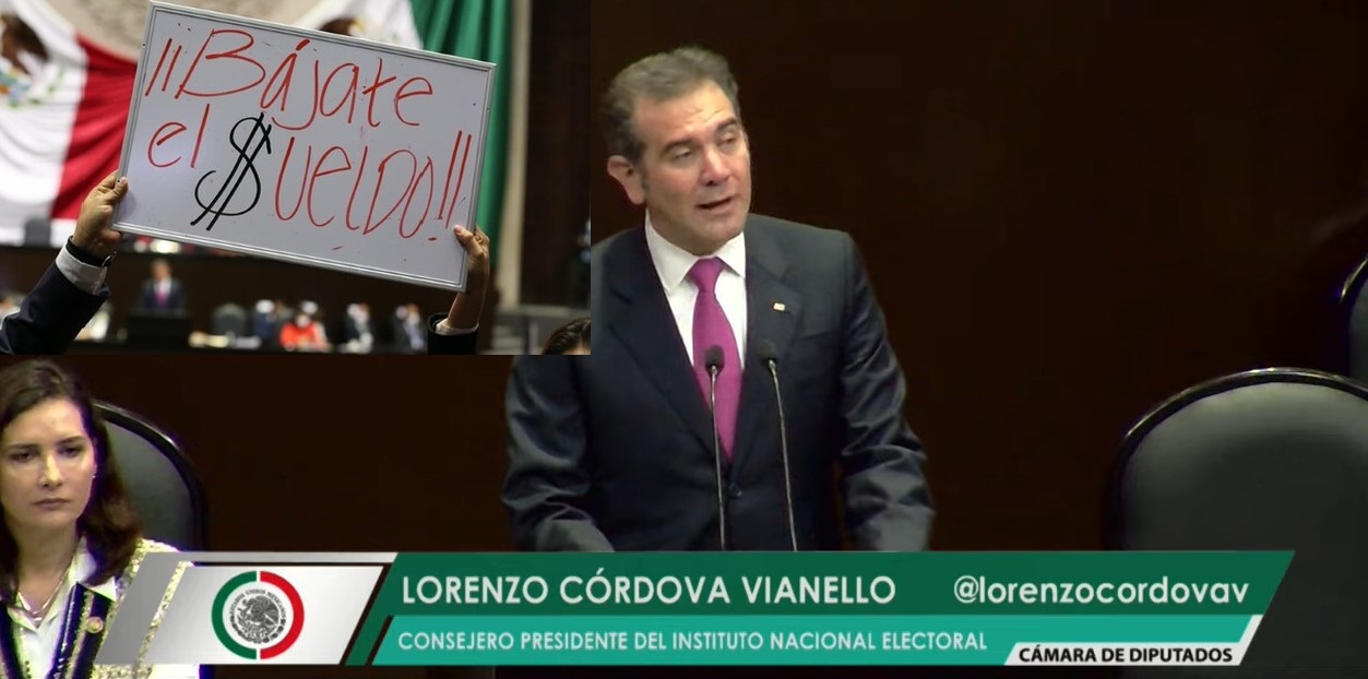 El presidente del consejo general del Instituto Nacional Electoral (INE), Lorenzo Córdova, compareció ante el pleno de la Cámara de Diputados, para exponer el proyecto de presupuesto del organismo electoral, lo que aprovecharon para gritarle: “bájate el sueldo”.
