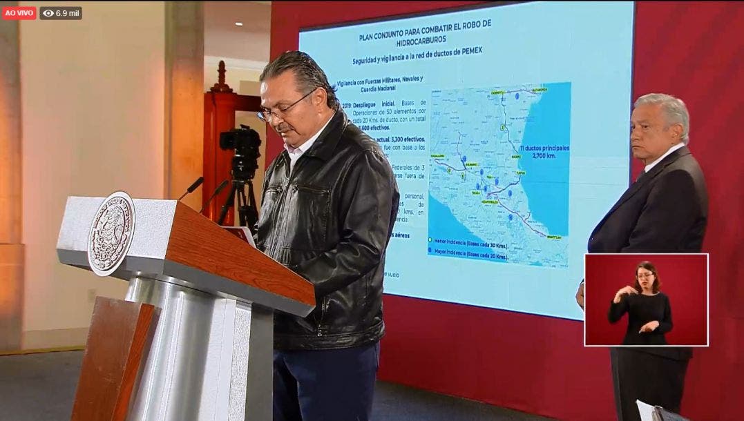 “Dentro de estas acciones la intervención de la Sedena y Marina en el centro de control de México con 44 ingenieros militares para la verificación y monitoreo del sistema y verificando las alertas por pérdida de presión por las tomas clandestinas”, añadió.