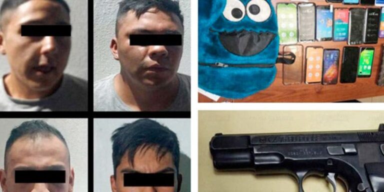La corporación, señaló que después de asegurar a los probables delincuentes; fueron identificados como: Mario Alberto N., Bryan N., Alan Ernesto N. y Orlando N., de 32, 21,25 y 21 años de edad; entre los sospechosos se encuentra un menor de edad.