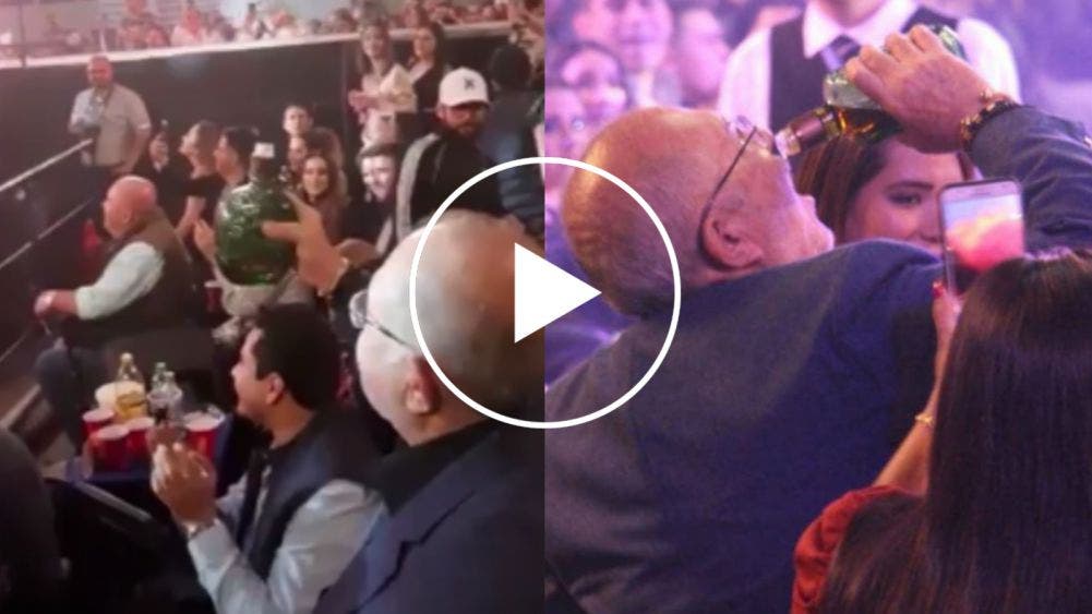 El Alcalde de #Mazatlán, Químico Benítez Torres, se empina una botella durante la presentación de Julión Álvarez, desatando los aplausos del público.