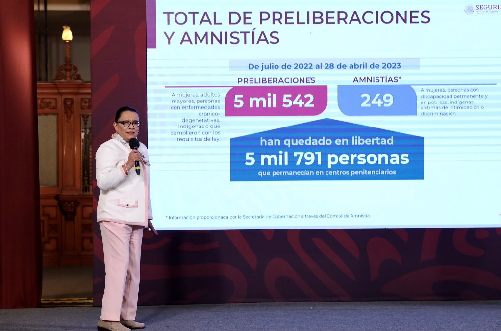 Desde julio del 2022 al 28 de abril de este año, 5 mil 542 personas que permanecían en centros penitenciarios, obtuvieron su libertad anticipada y 249 más consiguieron amnistías.