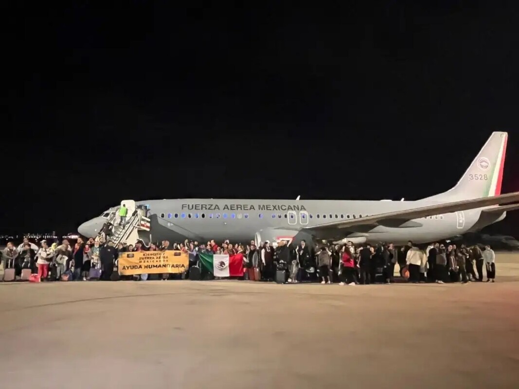 En punto de las 19:05 horas aterrizó en la Base Aérea Militar No.1, en Santa Lucía, Estado de México, el primero de los dos aviones de la Fuerza Aérea Mexicana (FAM) que traen de vuelta a los connacionales que estaban varados en Israel.