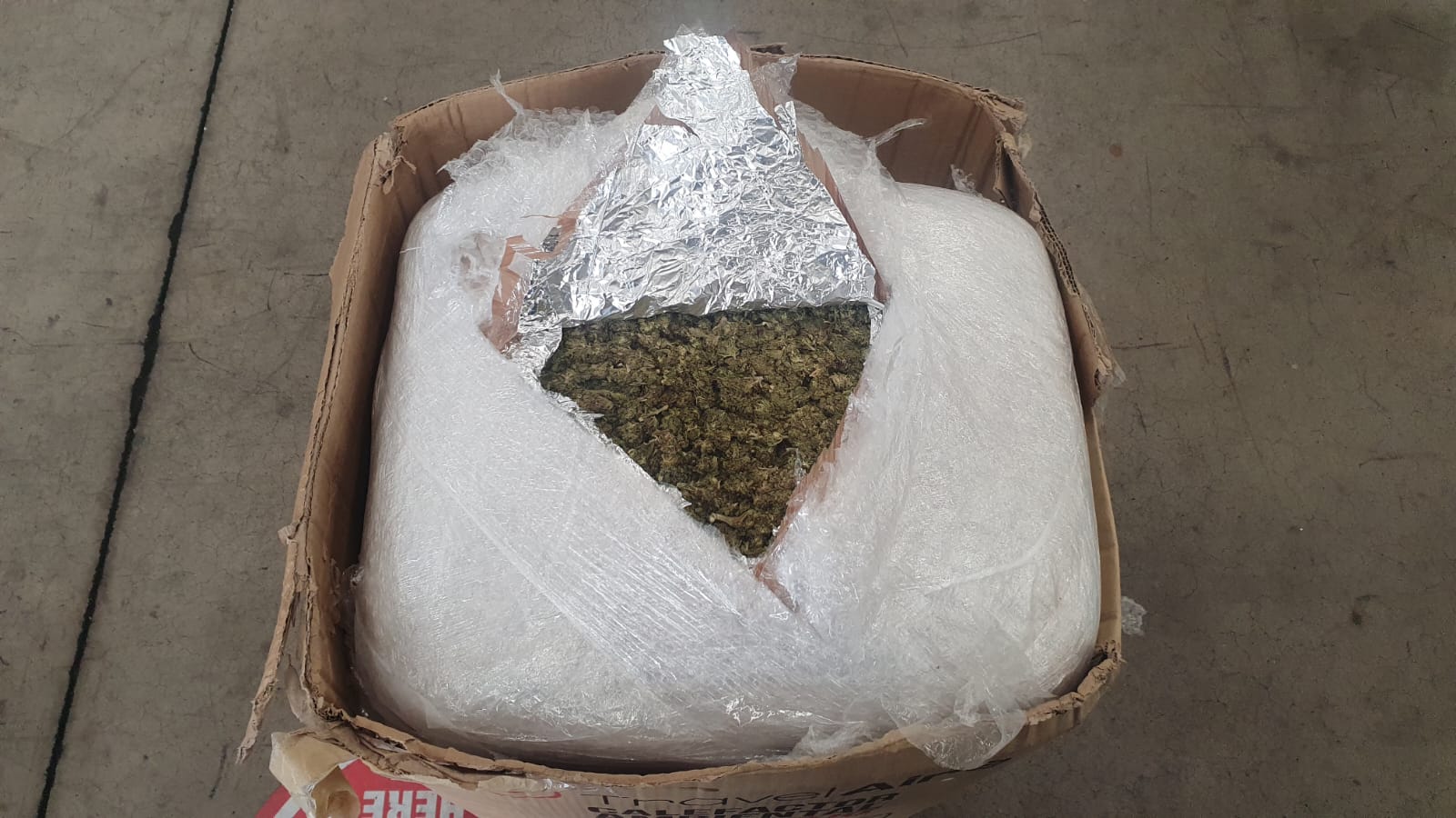 Un sorpresivo operativo llevado a cabo por elementos de la Guardia Nacional, auxiliados por un binomio canino, dejó como resultado el aseguramiento de 26 kilos de aparente marihuana en una empresa de mensajería ubicada en Querétaro. La droga estaba en una caja de cartón simulando un calentador.