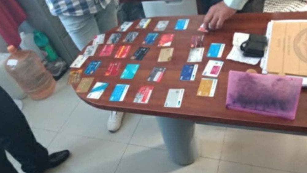 Al momento, los agentes les realizaron una revisión personal y encontraron a los sospechosos una cartera con 31 tarjetas de crédito y débito, además de diversos bauchers de retiro de efectivo de diferentes instituciones bancarias.