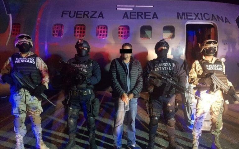 Luego de la aprehensión, el objetivo criminal fue traslado como las 21:00 horas de ayer viernes, a las instalaciones de la Fuerza Aérea Mexicana, mediante un operativo resguardado por elementos de la Secretaría de la Defensa Nacional, Guardia Nacional, Guardia Estatal de Seguridad e Investigación.