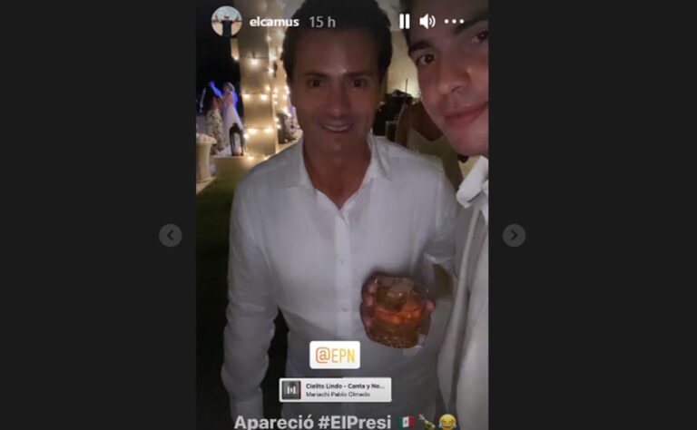 En un video en las historias de Instagram, Camus García Caballero, hermano de la novia mostró al exmantadario, con quien compartió la mesa de honor junto a la pareja de Peña Nieto, Ruiz Eichelmann y acompañados del exministro de las Tecnologías de la Información y las Comunicaciones de Colombia, David Luna, esposo de Laura, también hermana de la novia.