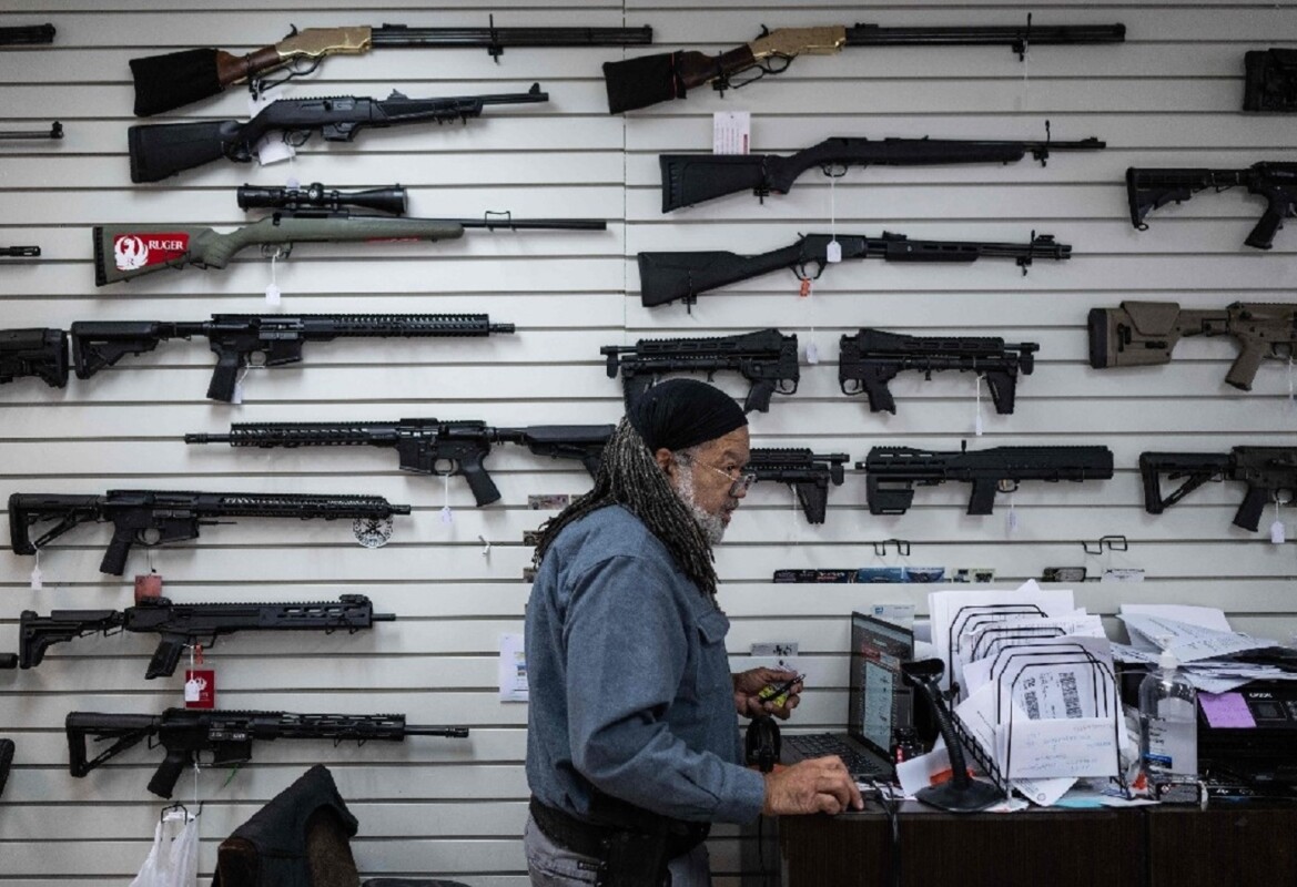 Un cliente revisa un rifle de asalto en la armería EJB en Capitol Heights, Maryland. Afroestadunidenses son dueños del negocio en el área de Washington. Entre las medidas promulgadas por el presidente Joe Biden ayer resalta la orden de endurecer las reglas para verificar antecedentes de compradores.