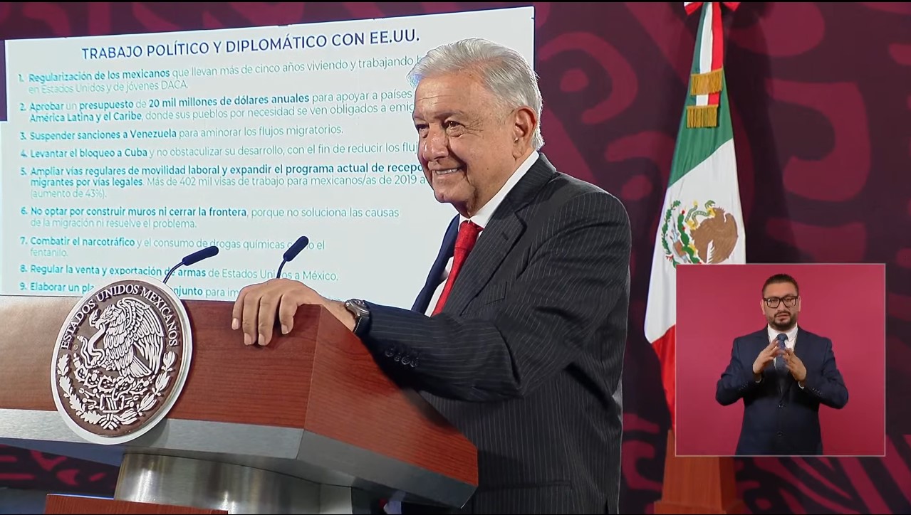 Mostró el listado de diez puntos que le ha planteado a Biden, que incluye la petición de que se regularice a los mexicanos que llevan cinco años viviendo en Estados Unidos de manera irregular, así como a los llamados “dreamers”. “Se va avanzando”, opinó.