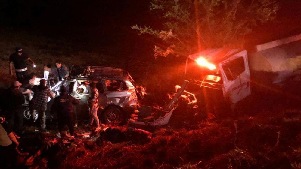 Según el reporte policial, el conductor de la pipa, de la empresa Pavetech, se quedó sin frenos y en una curva cerca del paraje “Loma Larga” terminó estrellando de forma frontal contra una camioneta que venía en el carril contrario, misma donde viaja una familia, el choque ocurrió anoche como a las 22:00 horas.