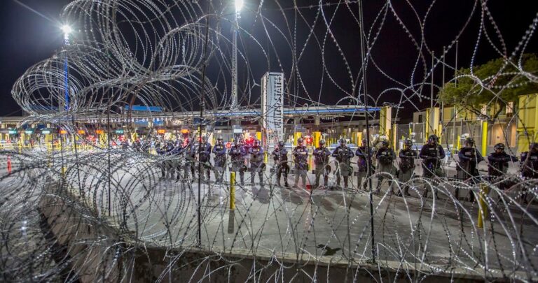 Una alambrada de púas da la «bienvenida» a los visitantes a Estados Unidos, instalada para impedir el paso de migrantes centroamericanos.