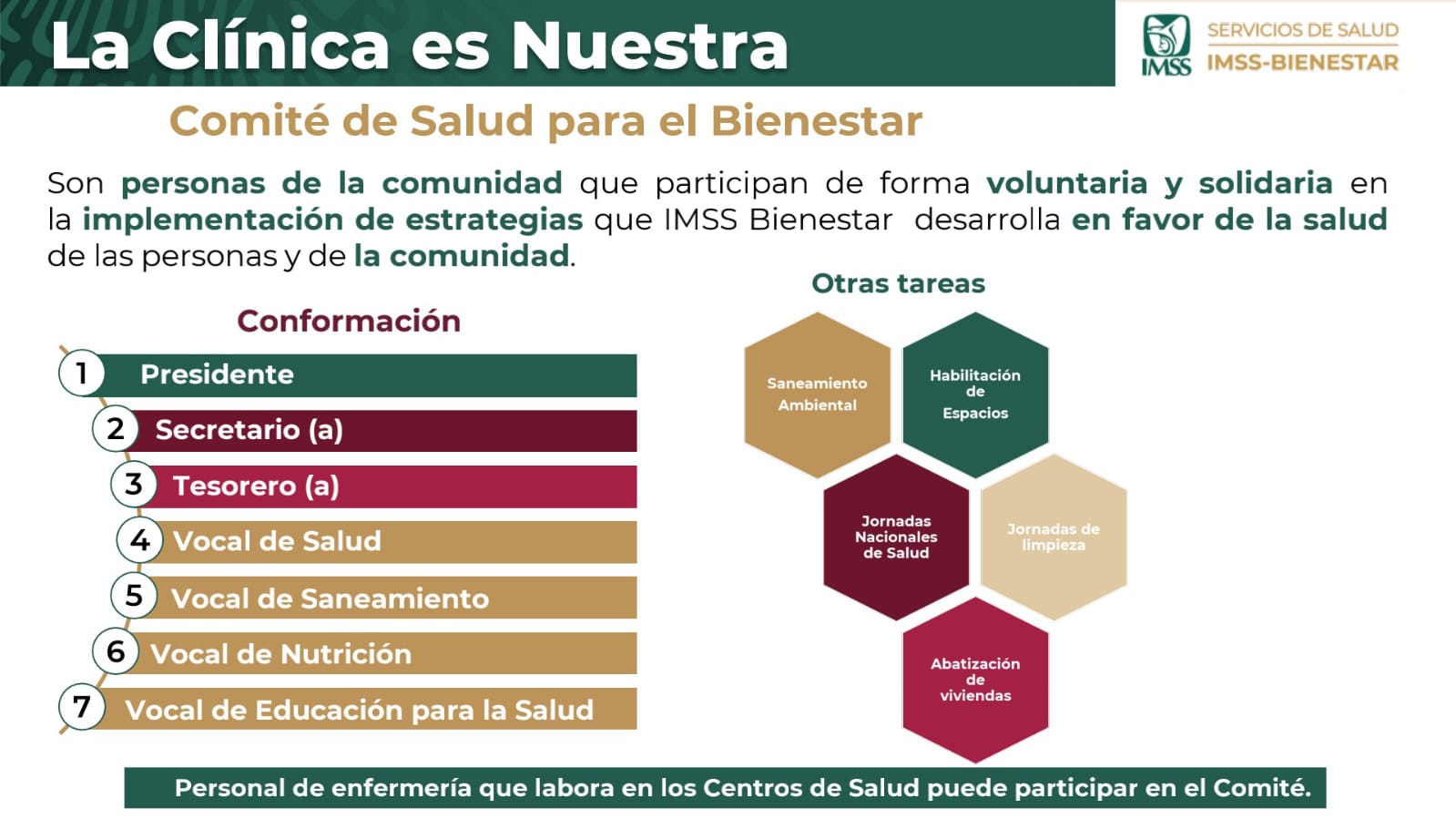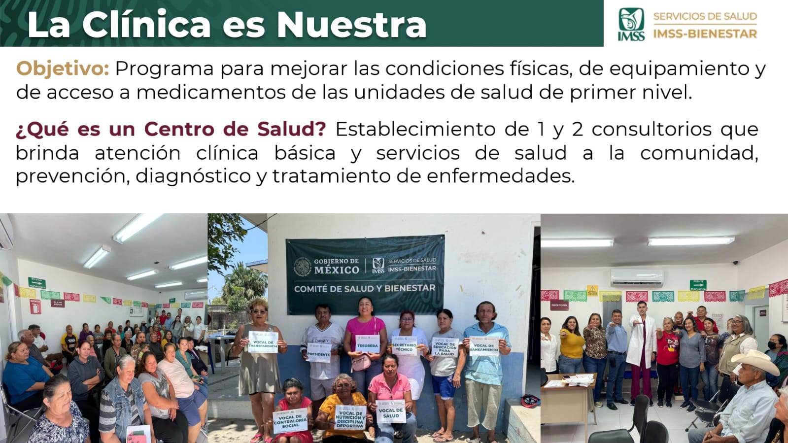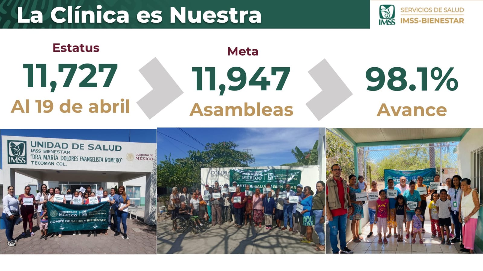 Por otra parte, expuso que desde el 22 de marzo iniciaron las asambleas relacionadas con el programa la Clínica es Nuestra, con el que se busca mejorar las condiciones de infraestructura como equipamiento de primer nivel de atención, “en donde se pueden resolver el 80 por ciento de las enfermedades sin necesidad de acudir a un hospital”.