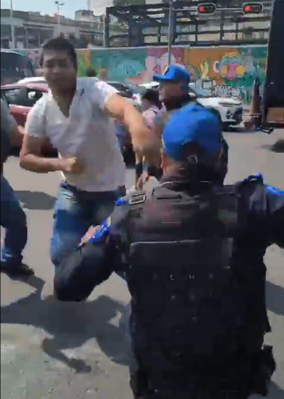A puño limpio, elemento de la @SSC_CDMX se enfrenta contra vendedor ambulante, esto en la alcaldía Benito Juárez en la av Universidad