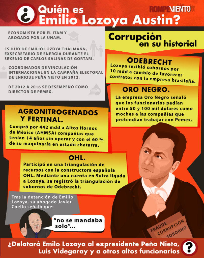 Mañana también está prevista una audiencia denominada innominada, donde el ex funcionario también manifestará que hay un avance con la FGR para conseguir un criterio de oportunidad para suspender el proceso por el caso Odebrecht y también la suspensión de los procesos de su madre y hermana Gilda Austin de Lozoya y de Gilda Susana Lozoya, respectivamente, así como de su esposa Marielle Helena Eckes.