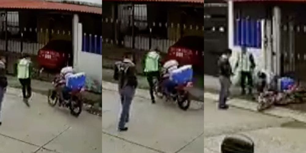 Al no detenerse el cliente, uno de los cobradores se avienta contra él, sin importarle poner en riesgo su vida como la del motociclista que cayó bruscamente al suelo.