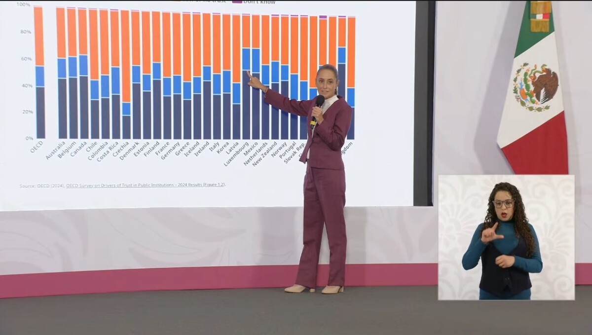 El 54 por ciento de la población en México confía en el gobierno federal, cifra superior al promedio de 39 por ciento registrado en los países de la Organización para la Cooperación y el Desarrollo Económico (OCDE), informó este miércoles la Secretaría Anticorrupción tras la publicación del Índice de Percepción de la Corrupción 2025 de Transparencia Internacional, que otorgó a México 27 puntos —uno más que en 2024— y lo ubicó en el lugar 141 de 182 países evaluados.