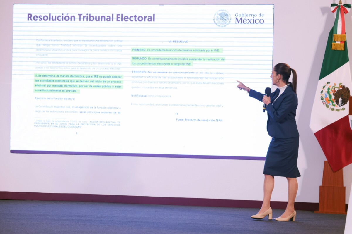 Tan era claro que no se había notificado, “que vuelven a notificar… Digamos que eso ya quedó un poco en el pasado, porque el Tribunal Electoral del Poder Judicial ya resolvió sobre la elección de jueces, magistrados y ministros; el INE dice que continúa y lo importante para el pueblo es que su mandato está siendo respetado. El 1 de junio de 2025, todos los mexicanos los vamos a elegir”.