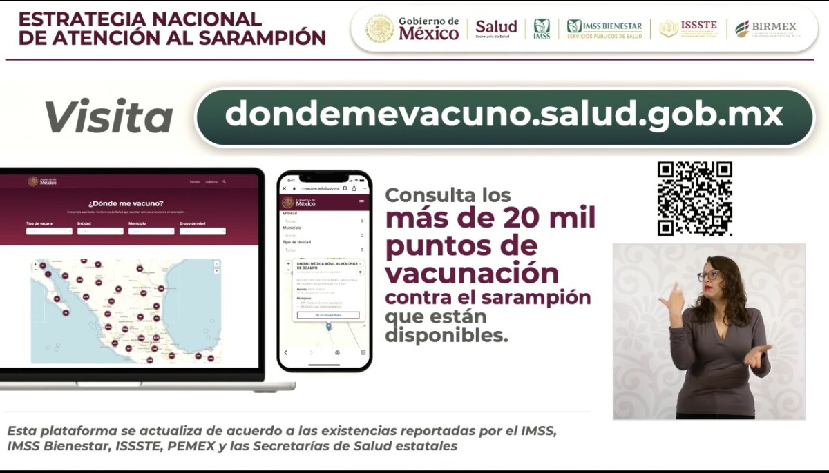 Clark recordó que la vacuna es gratuita y universal, y puede aplicarse en cualquier centro de salud del país, sin importar la institución. Además, invitó a la población a consultar el portal dondevacuno.salud.gob.mx para ubicar el punto de vacunación más cercano.