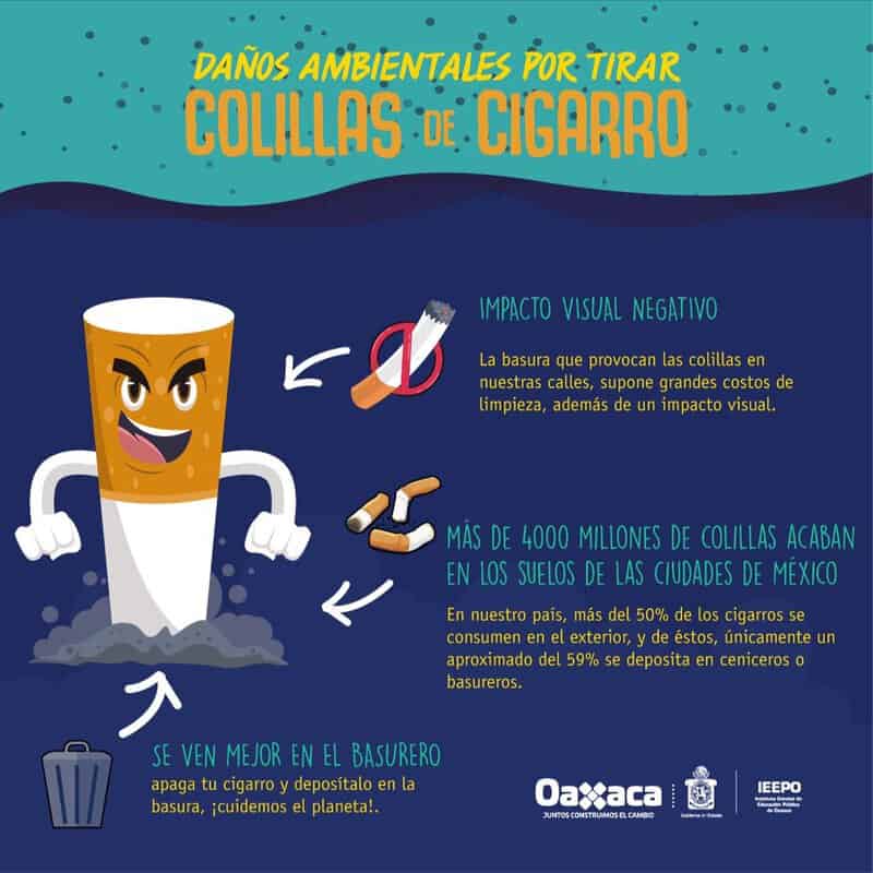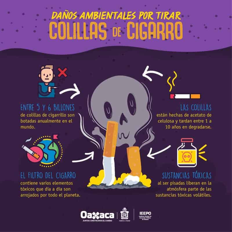 Una sola colilla contamina hasta 50 litros de agua potable o 15 litros de agua de mar. Estos desechos tóxicos provienen de más de 13 millones de fumadores, sólo en México afirmó Leopoldo Benítez González, biólogo egresado de la Facultad de Estudios Superiores (FES) Iztacala de la UNAM.