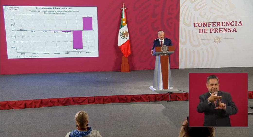 La economía mexicana terminó el tercer trimestre de 2020 con una fuerte recuperación del 12 por ciento, después del desplome histórico del trimestre anterior cuando descendió 17 puntos porcentuales, principalmente por las medidas de sana distancia y otras restricciones de movilidad que la contingencia sanitaria de la Covid-19 requirió.