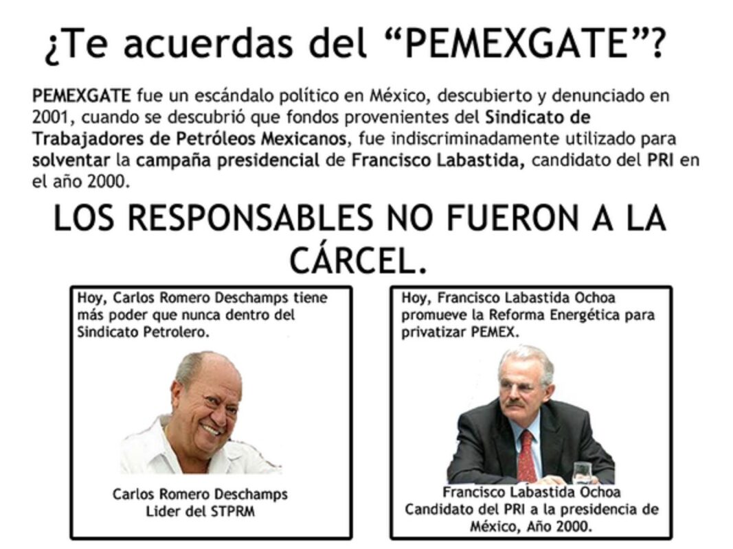 También habló del ex candidato del PRI a la Presidencia y ex gobernador de Sinaloa, Francisco Labastida Ochoa, quien en una entrevista con la periodista Carmen Aristegui hizo señalamientos en sentido similar.