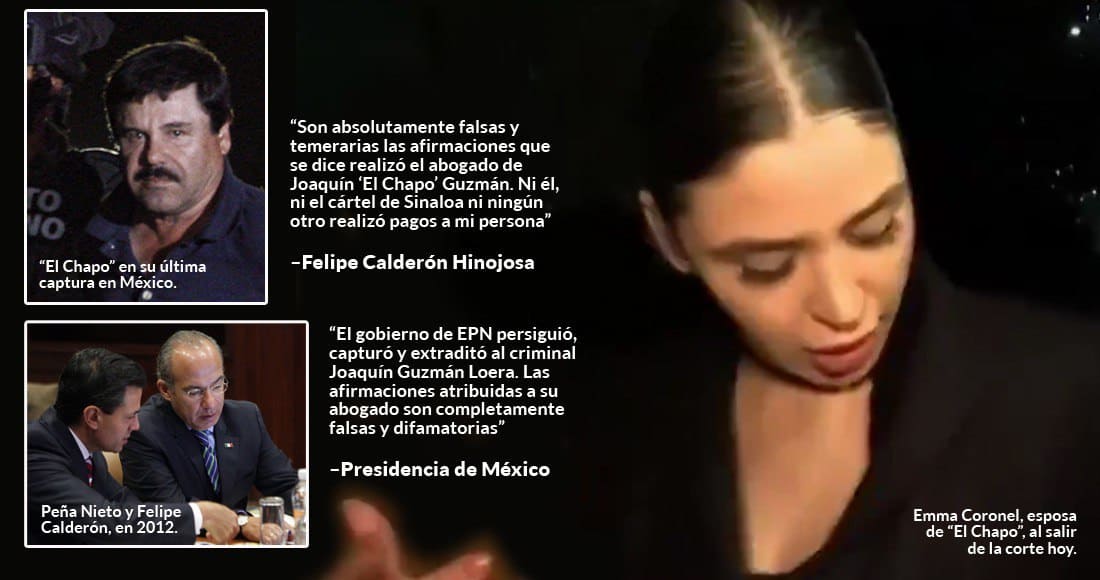 Tras las explosivas declaraciones del abogado de El Chapo los implicados –Felipe Calderón y Enrique Peña Nieto –de inmediato desmintieron haber recibido dinero del Cártel de Sinaloa.