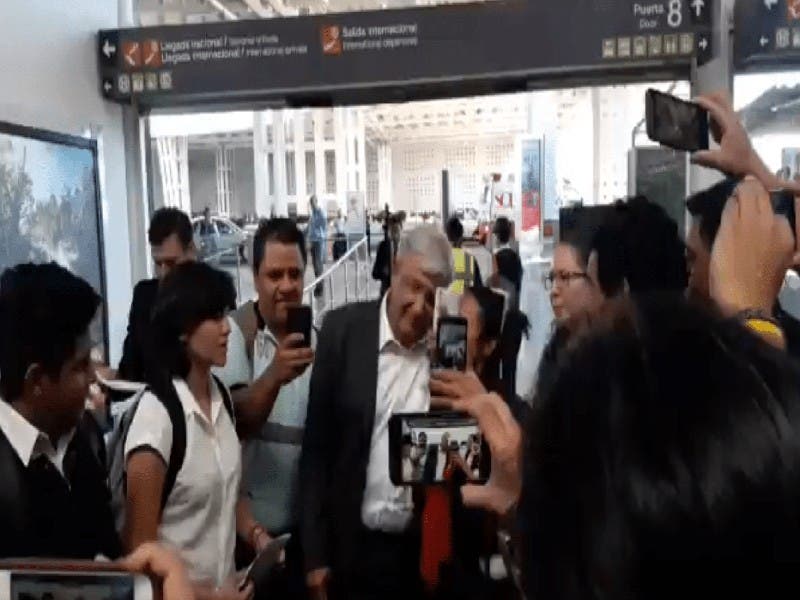 Se dirigió en un vuelo comercial, eran muchas personas que lo esperaban, su seguridad se vio opacada con las personas que pretendían darle peticiones o quieran una foto con él.
