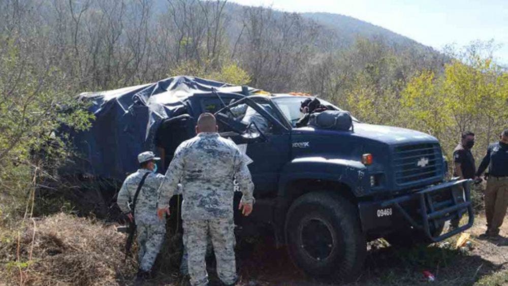 El vehículo chocado, transportaba elementos de la Guardia Nacional y quedó sobre un alud de tierra, lo que dejó cuatro militares gravemente heridos, quienes fueron trasladados a diferentes hospitales para ser atendidos.