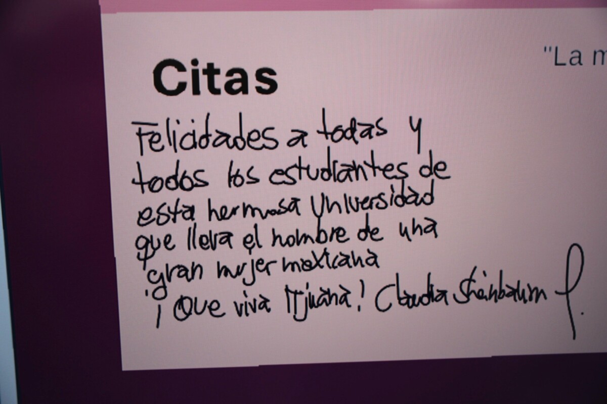 “Hoy es un día de fiesta porque las y los jóvenes de Tijuana tienen derecho a la educación superior en la Universidad Nacional Rosario Castellanos; y así como aquí en Tijuana, como ya dijo Mario (Delgado, secretario de Educación), vamos a abrir más preparatorias, más universidades y aprovecho para decirles que en Mexicali también vamos a abrir una Universidad Nacional Rosario Castellanos”.