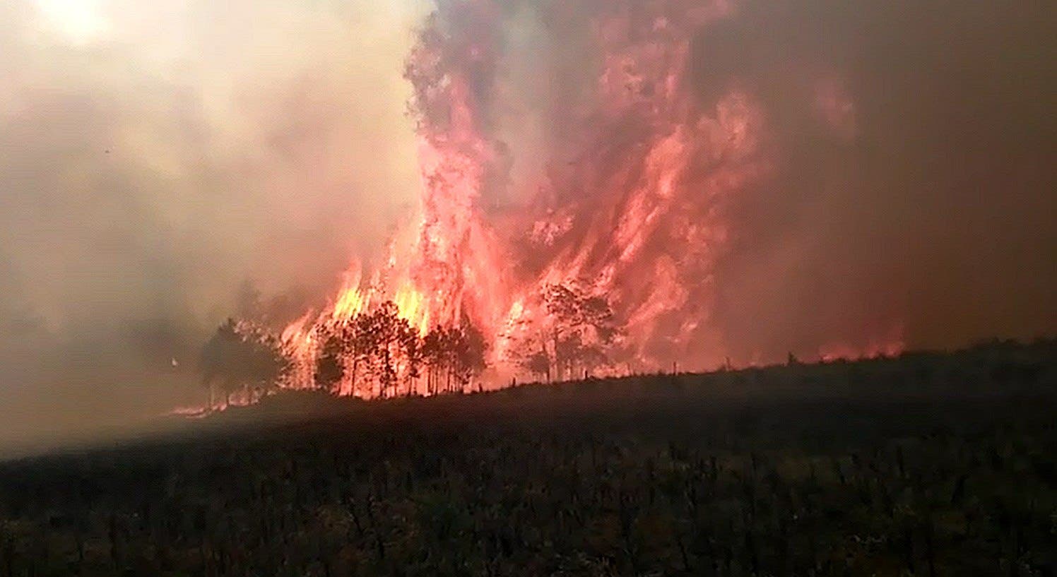 Guardabosques intentan sofocar un fuerte incendio forestal que arrasa con cientos de hectáreas de bosques de pino y amenaza a media docena de poblados en Veracruz.