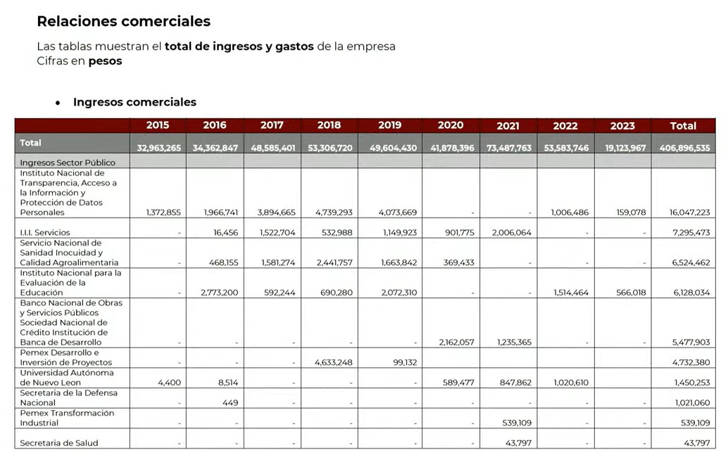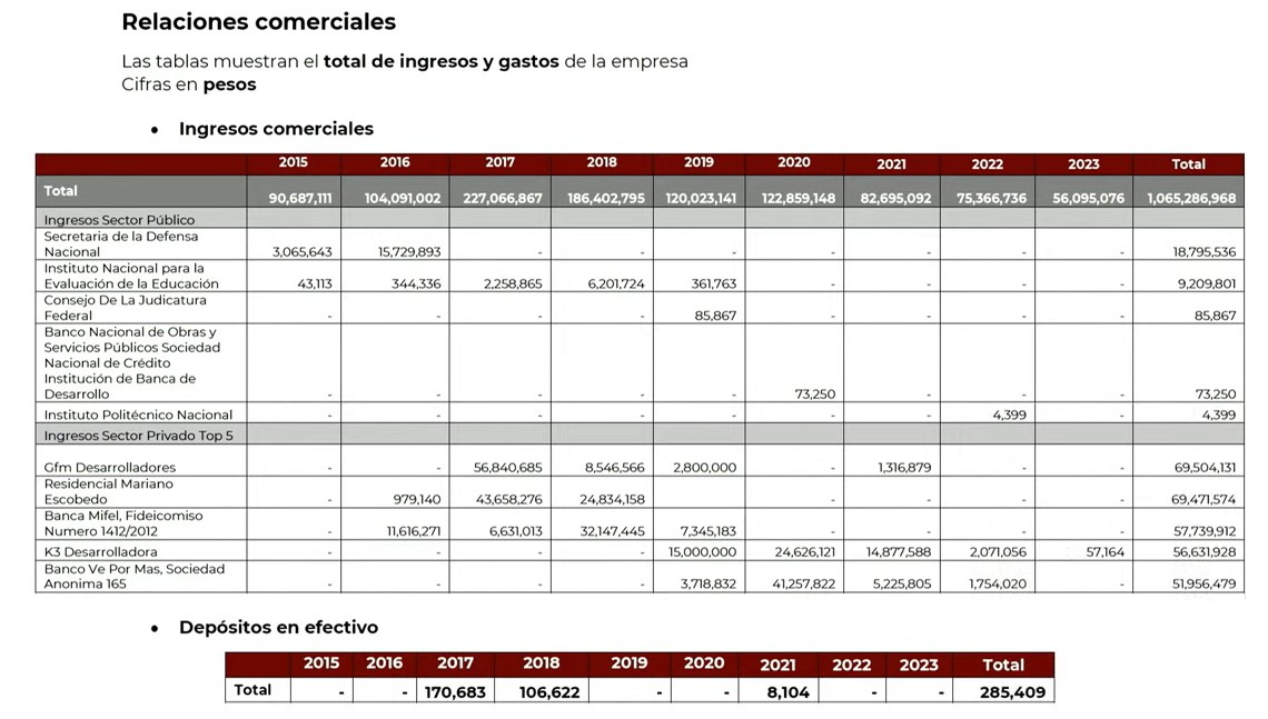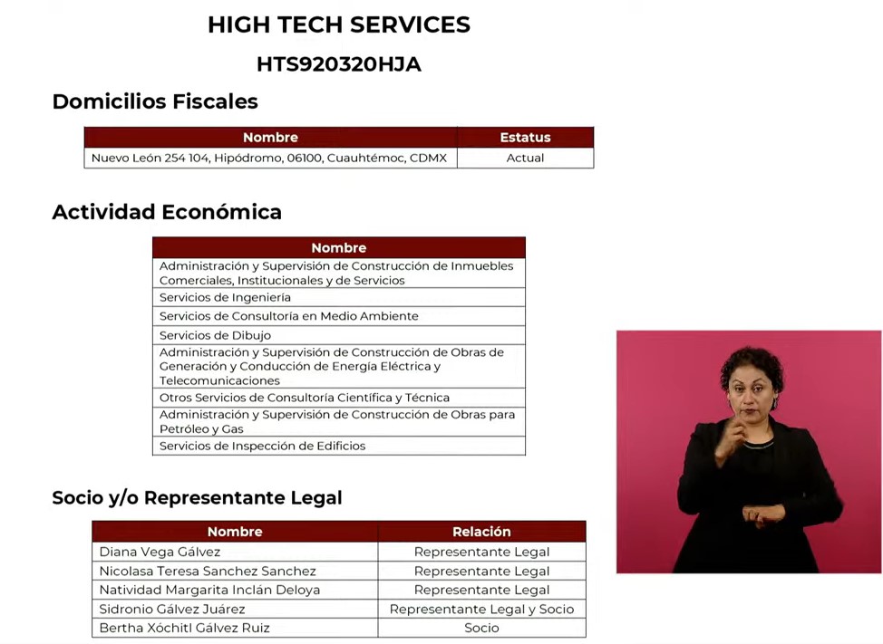 López Obrador volvió a presentar los contratos de las dos empresas de Gálvez de 2015 a la fecha, entre los que destacó algunos con la Secretaría de la Defensa Nacional, con el Instituto Nacional de Transparencia, Acceso a la Información y Protección de Datos Personales y con el Instituto Nacional para la Evaluación de la Educación; así como con desarrolladores privados, aunque con algunos con sede en la alcaldía Miguel Hidalgo, demarcación de la que la hoy senadora fue delegada. Por lo que consideró que se trata de actos de probable corrupción.