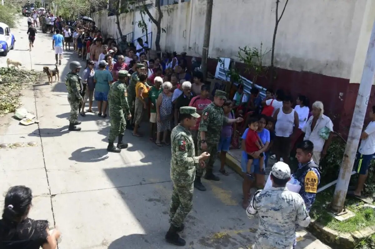 Personal de Sedena, Semar y Guardia Nacional comenzó el reparto de ayuda a afectados por el huracán ‘Otis’. Foto La Jornada.