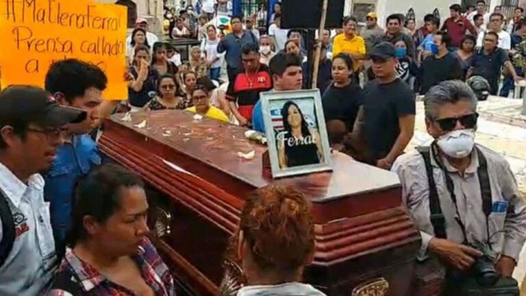 Mientras reporteros se manifestaron en diferentes puntos del estado, para exigir justicia por el asesinato a la profesional; familiares y amigos de la periodista María Elena Ferral, realizaron el funeral en Veracruz.