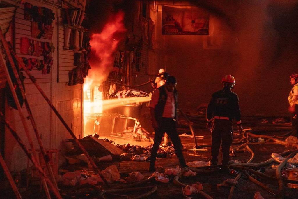 El fuego inició alrededor de las 16:00 horas (cuatro de la tarde) de este jueves en bodegas en las que se almacenaban distintas mercancías, principalmente calzado. Por este incendio se vio desde varios puntos de la capital una gran columna de humo negro, que las autoridades atribuyen a la gran cantidad de goma que se quemó.