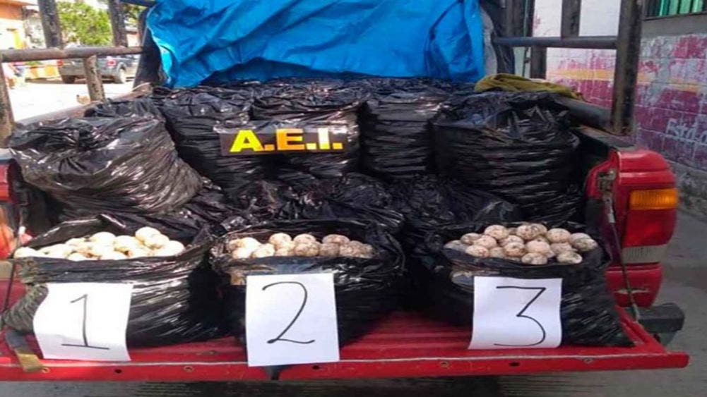 Los elementos al momento de la revisión, aseguraron en la batea del vehículo 50 bolsas de plástico color negra, conteniendo en su interior un total de 25 mil huevos de tortuga.